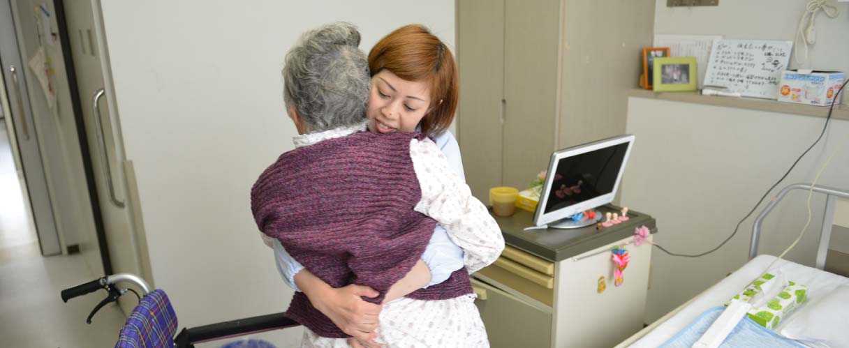 入院生活の援助をする中で、患者様と日々のコミュニケーションやタッチングを通じて、患者様に異変がないかいち早く変化に気づくのも介護福祉士の大切な役割です。